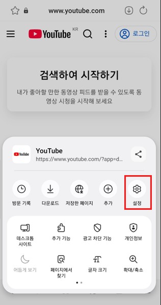 - 삼성 인터넷 앱을 열고 유튜브(YouTube)에 접속합니다.